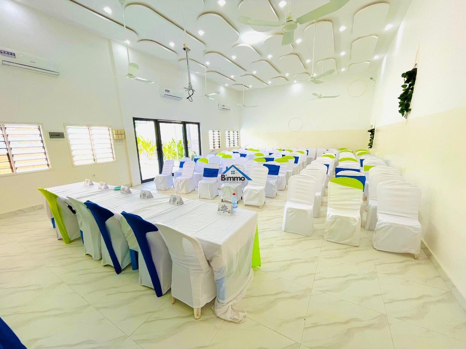 Location à la journée (24h) : Salle climatisée simple, sans électricité : 75.000 CFA Salle climatisée avec équipements complets et décoration, sans sonorisation : 150.000 CFA Capacité : 130 places assises. Le site est entièrement sécurisé et offre un accompagnement complet avec un agent de renseignements et de suivi. Il dispose également d’une douche et d’un WC, d’un accès wifi haut débit via fibre optique, d’une vidéosurveillance extérieure, d’un service de nettoyage quotidien et d’agents de sécurité. Le parking est prévu pour vélos, motos et voitures. Heures d’entrée : 07h – 07h